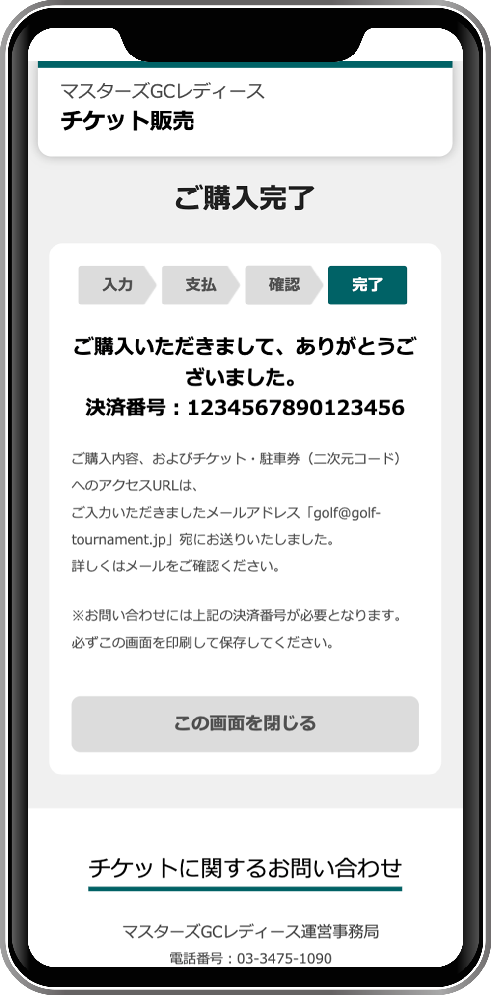 ※「ご購入完了」の画面が表示されない場合、購入はできていませんので、